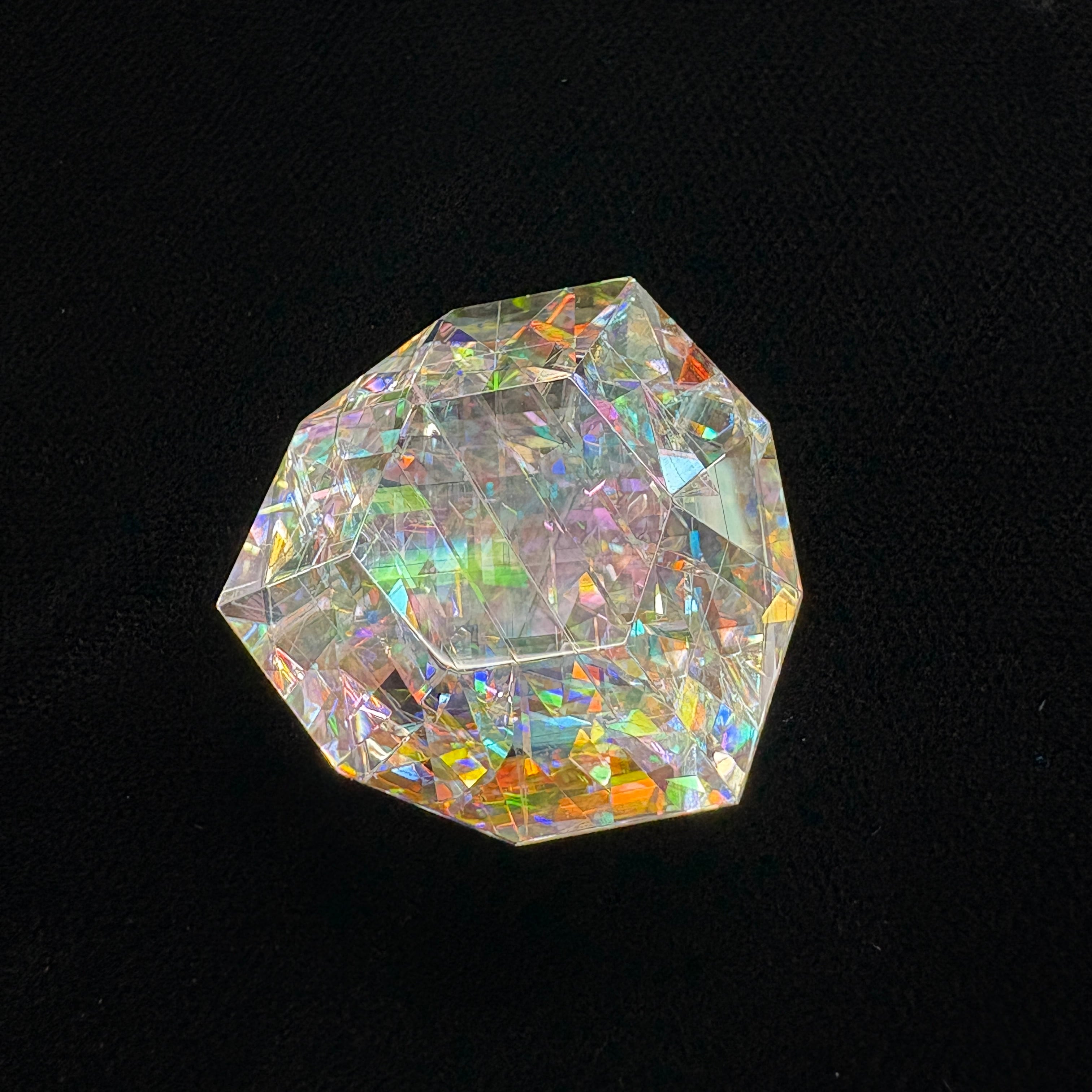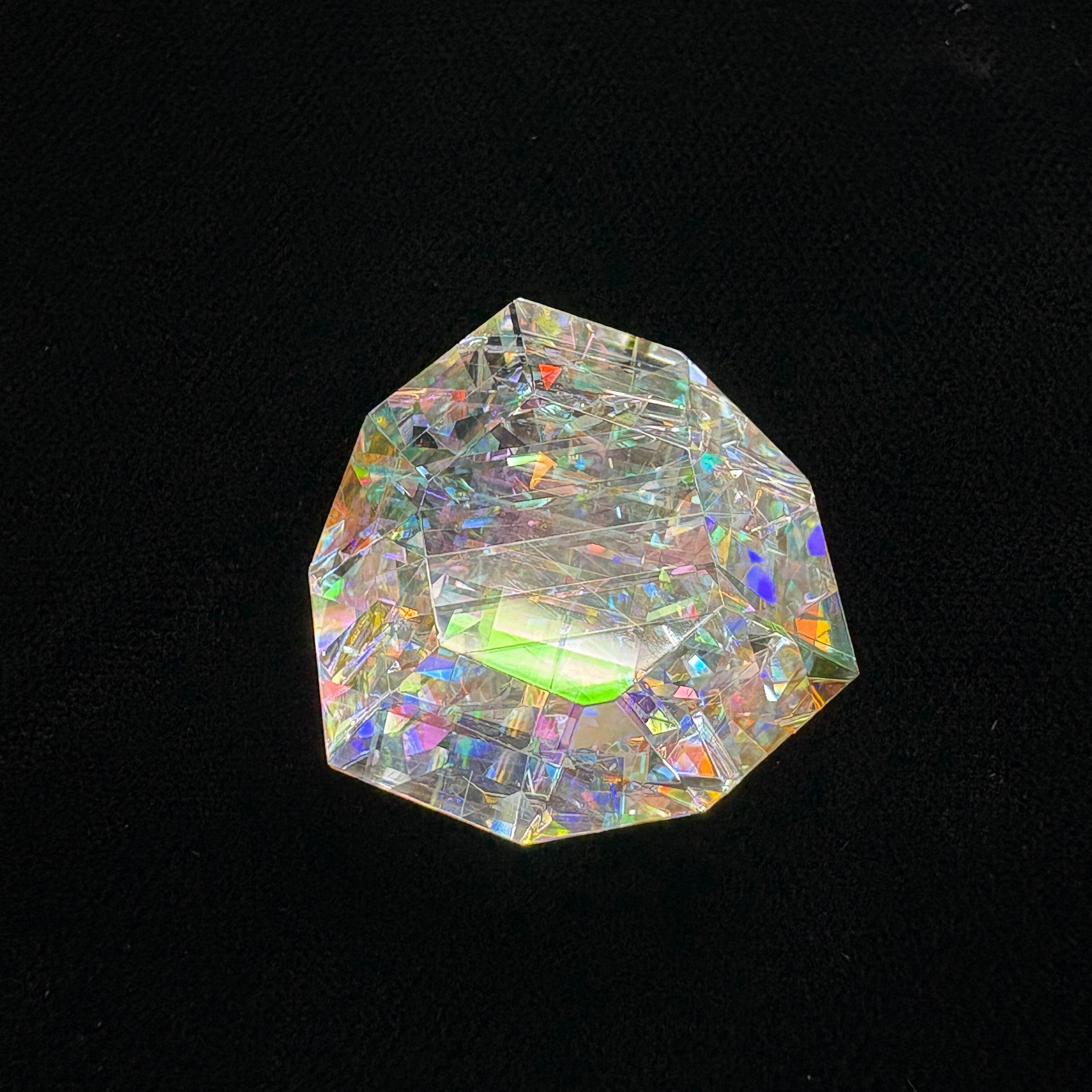 数十個のダイクロイックガラスパーツを複雑に貼り合わせて、4段階ものダイヤモンド研磨、鏡面仕上げしています。鏡面仕上げの研磨剤も最適粒度を厳選して使用しています。