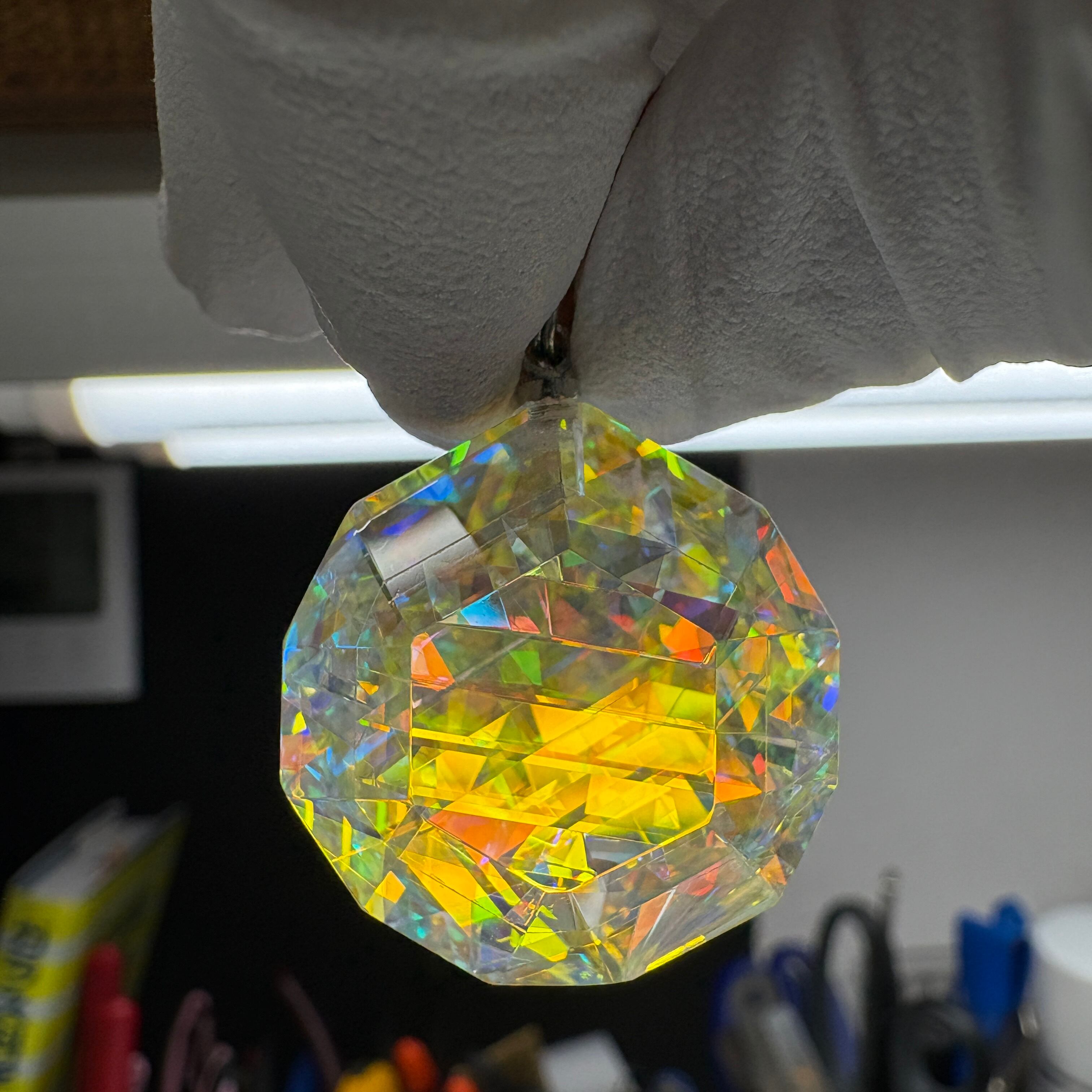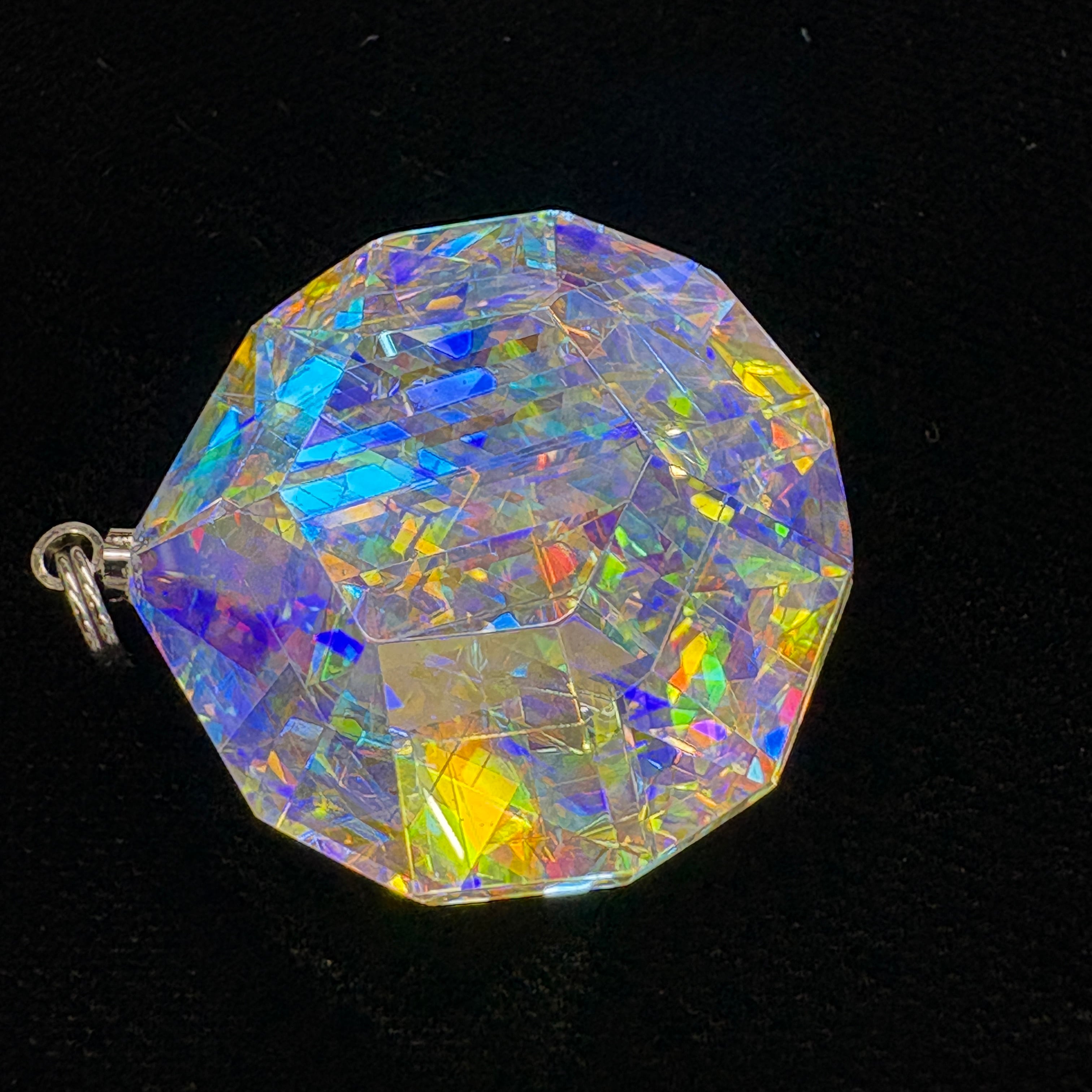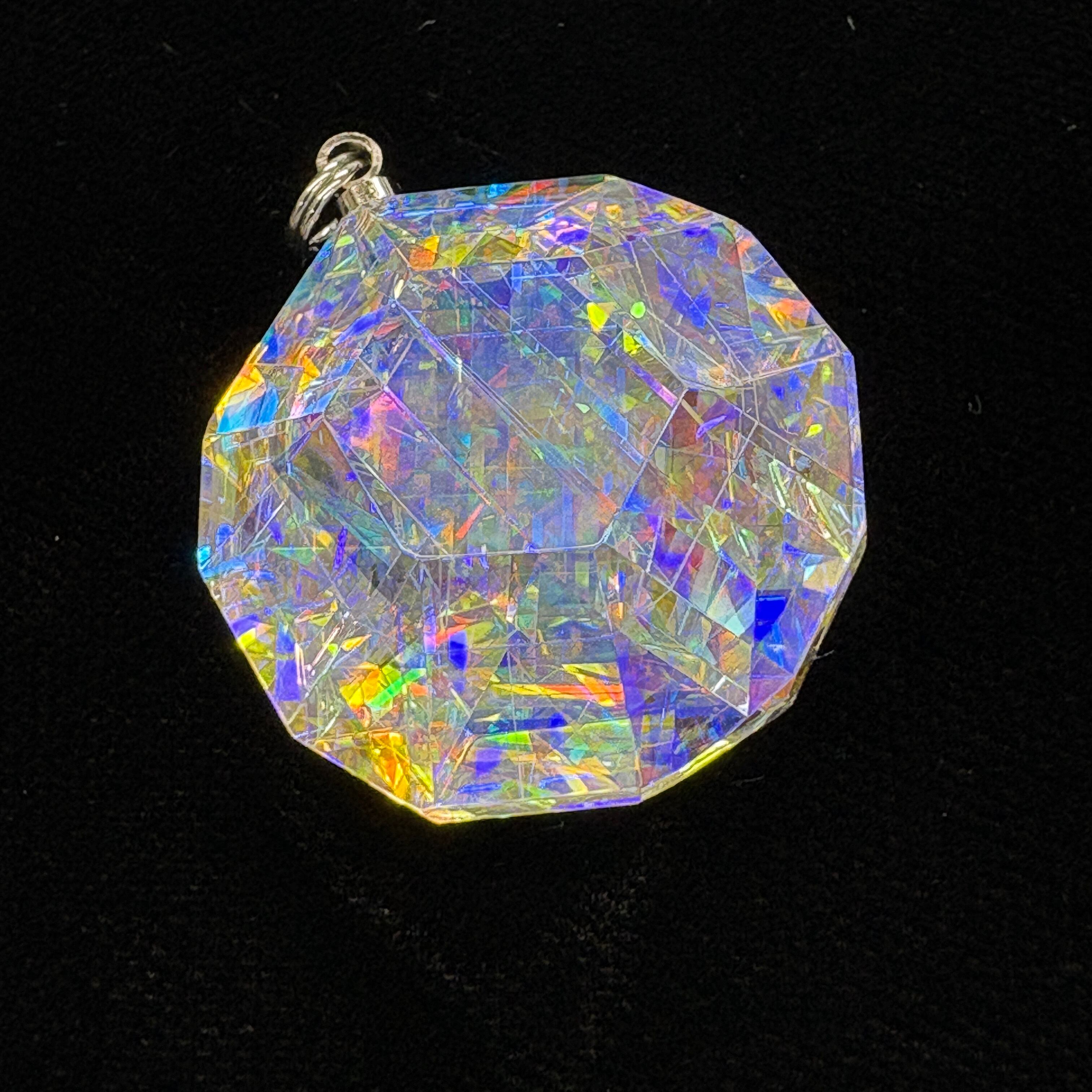 数十個のダイクロイックガラスパーツを複雑に貼り合わせて、4段階ものダイヤモンド研磨、鏡面仕上げしています。鏡面仕上げの研磨剤も最適粒度を厳選して使用しています。