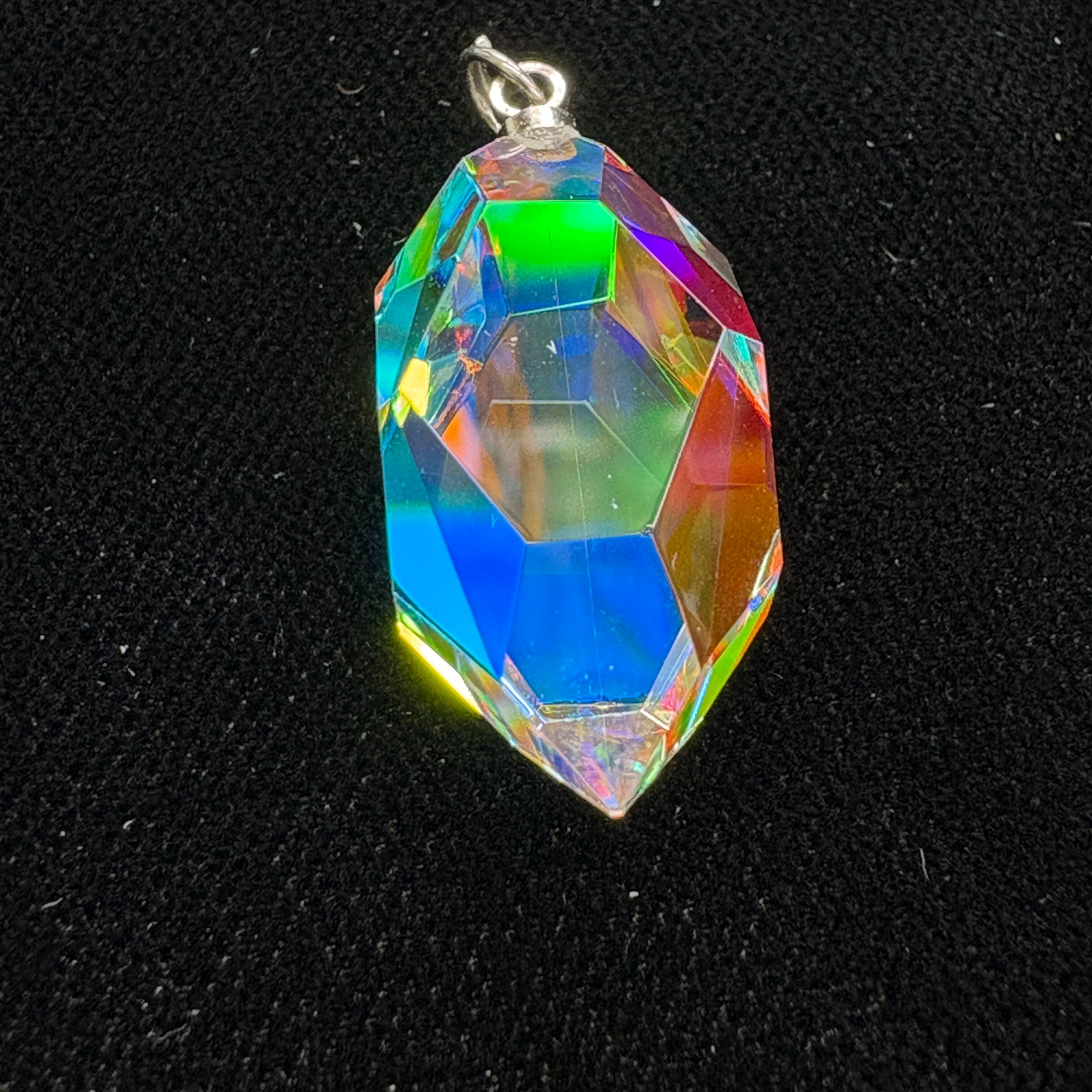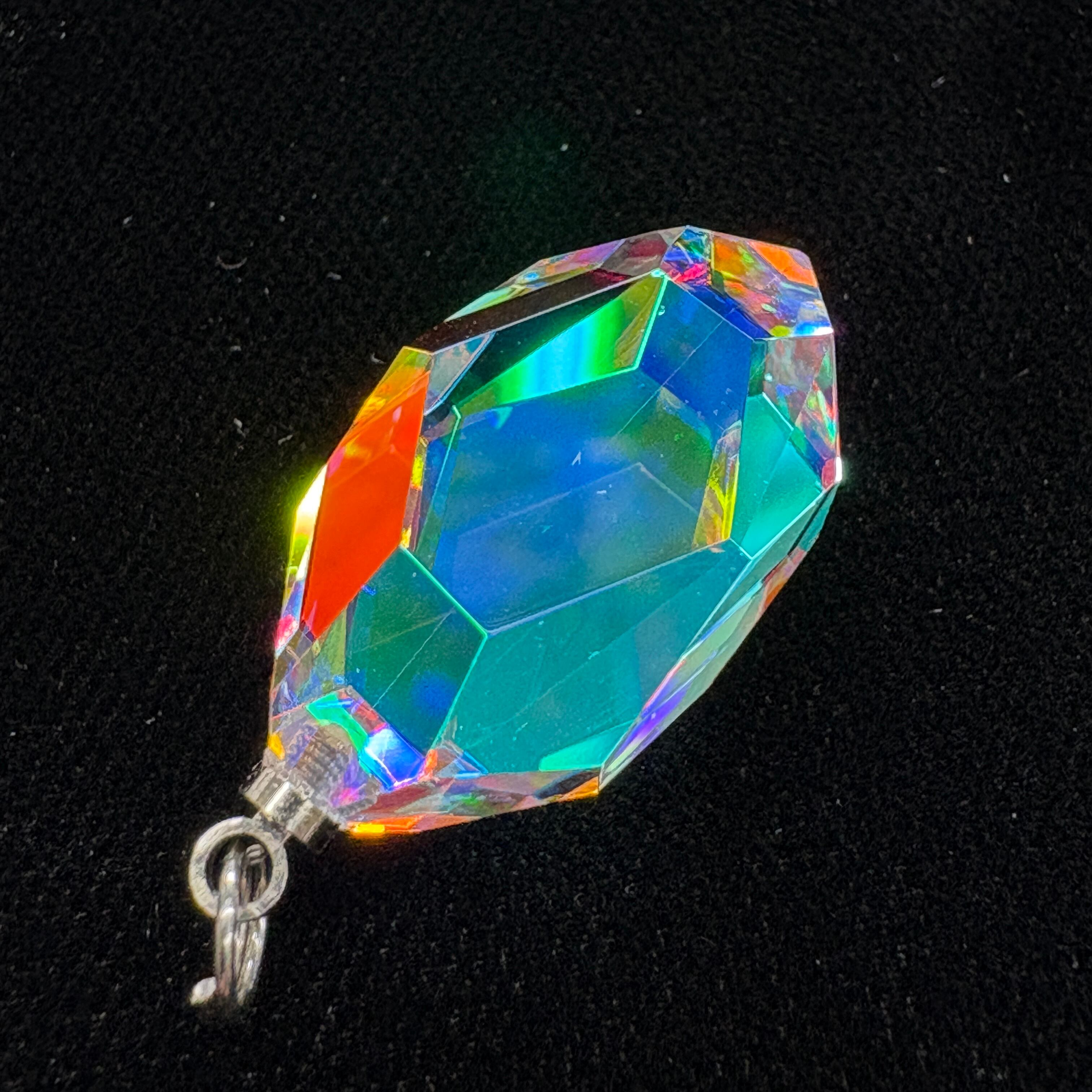 波長分別反射・透過・屈折効果に加え、プリズム効果による光の分散をも味方にして虹色を最大限に楽しむ事が出来るガラス作品です。
