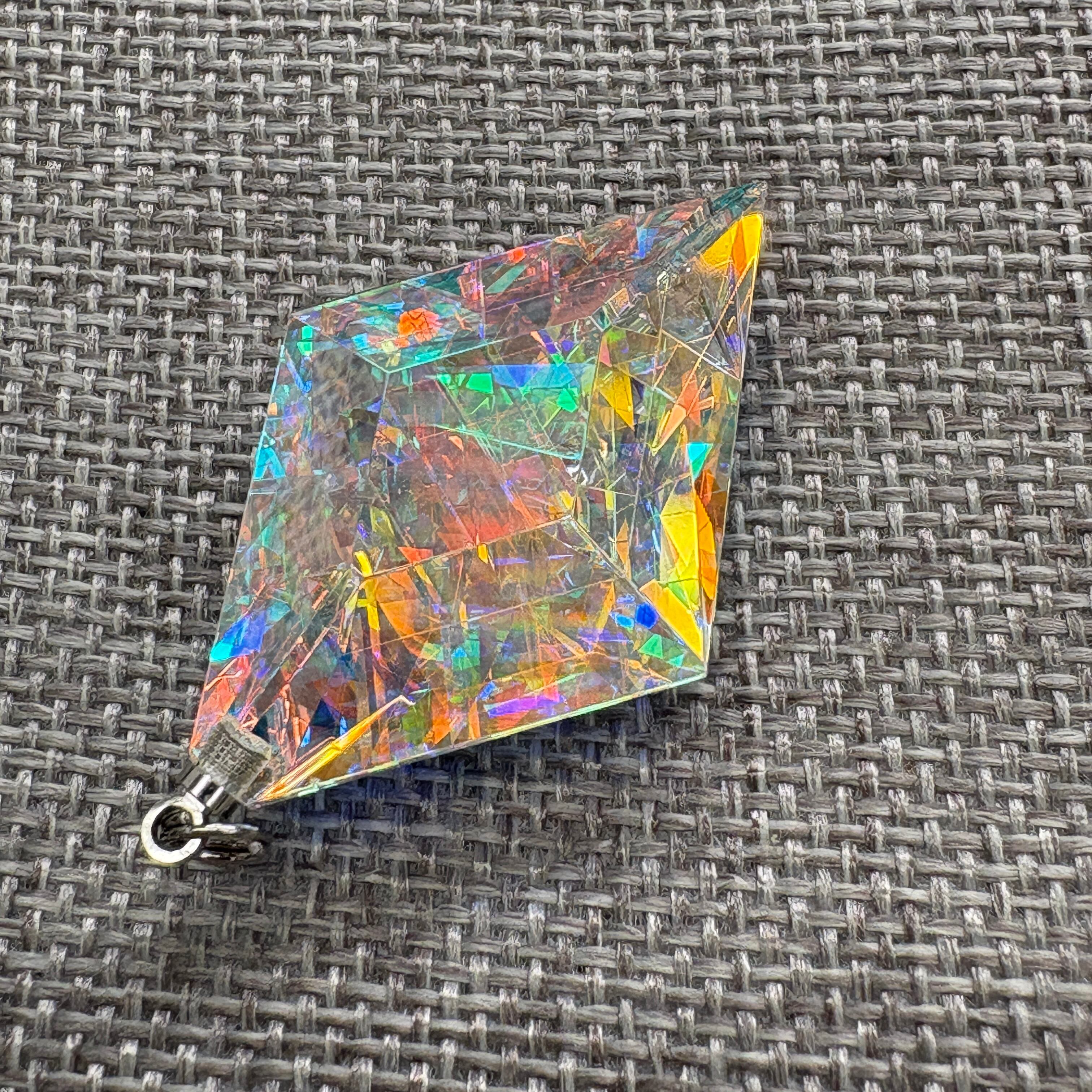 数十個のダイクロイックガラスパーツを複雑に貼り合わせて、4段階ものダイヤモンド研磨、鏡面仕上げしています。鏡面仕上げの研磨剤も最適粒度を厳選して使用しています。