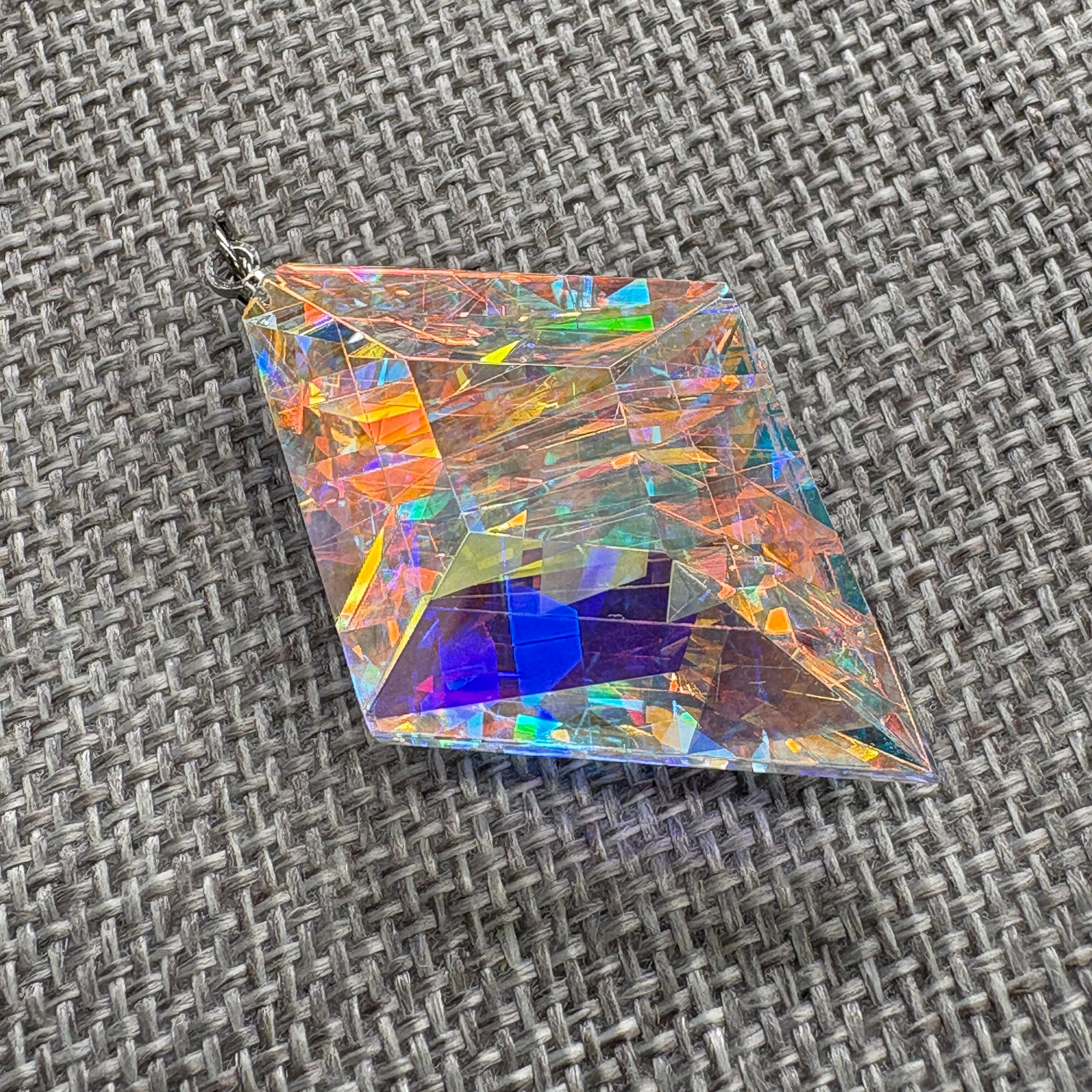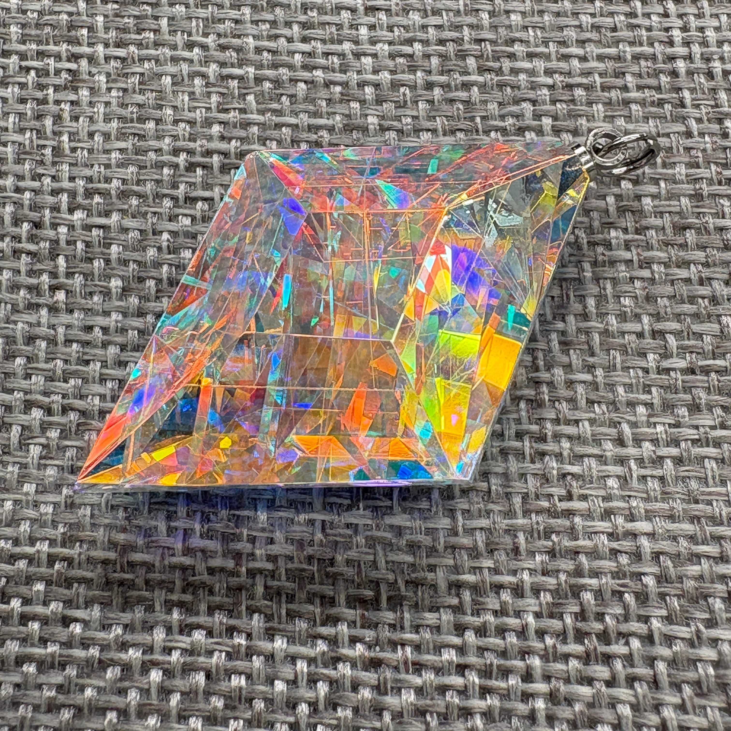 波長分別反射・透過・屈折効果に加え、プリズム効果による光の分散をも味方にして虹色を最大限に楽しむ事が出来るガラス作品です。