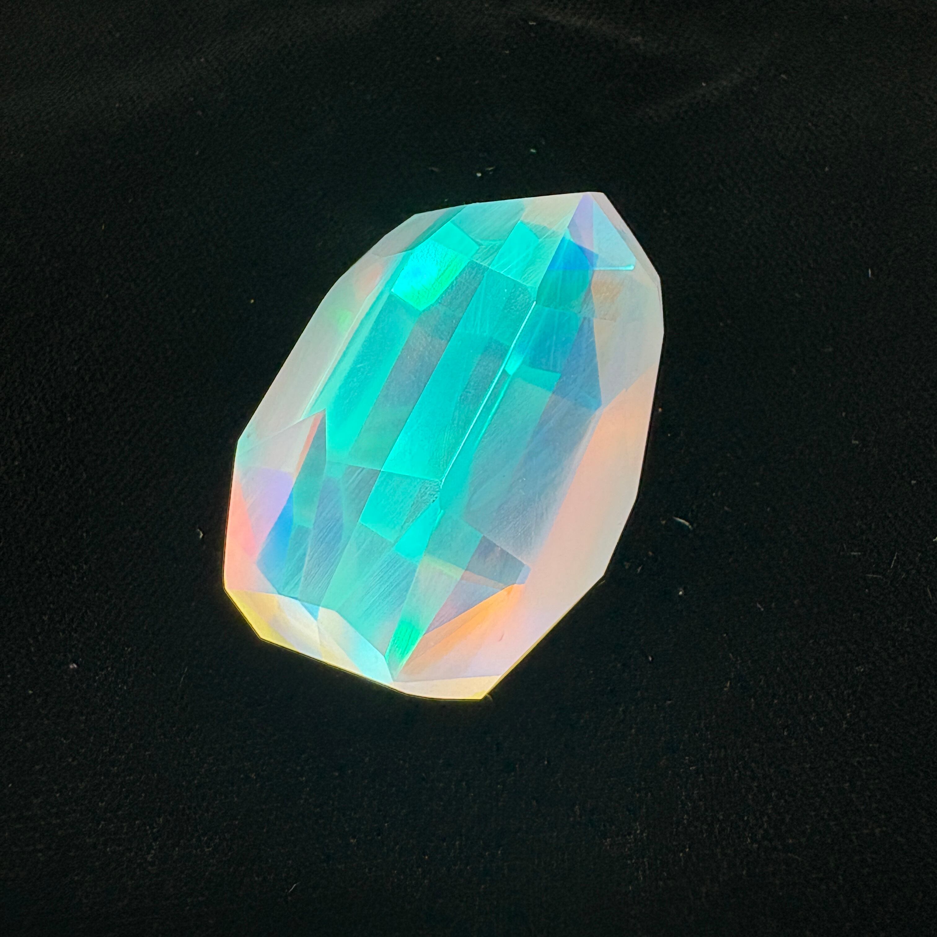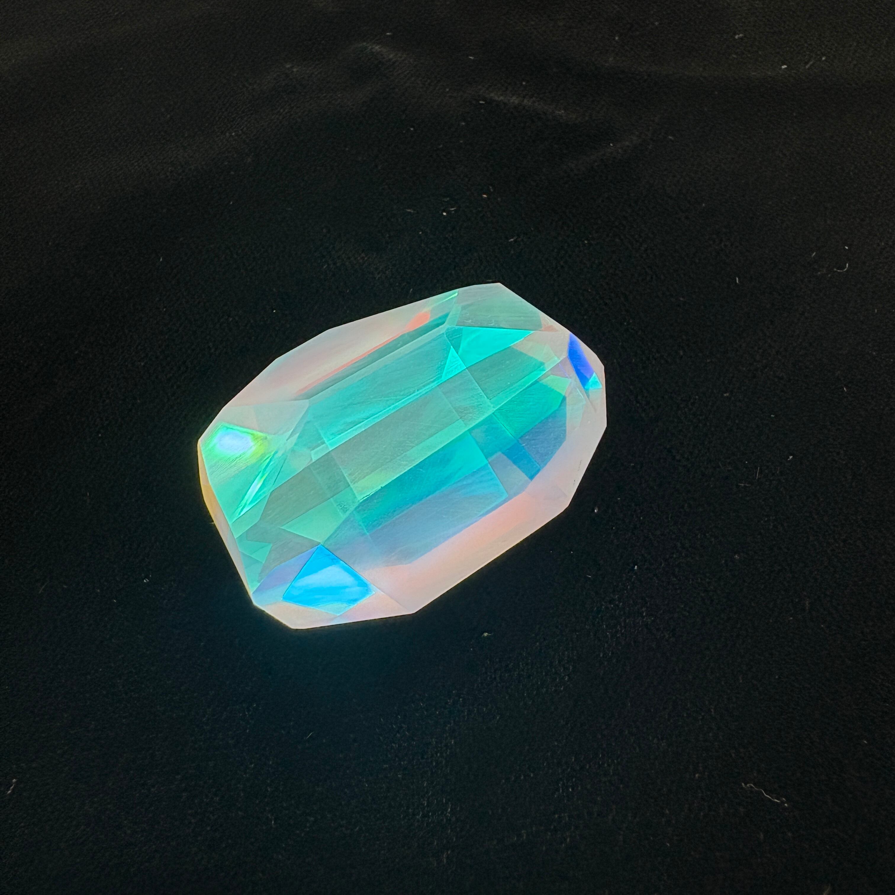 数十個のダイクロイックガラスパーツを複雑に貼り合わせて、4段階ものダイヤモンド研磨、鏡面仕上げしています。鏡面仕上げの研磨剤も最適粒度を厳選して使用しています。